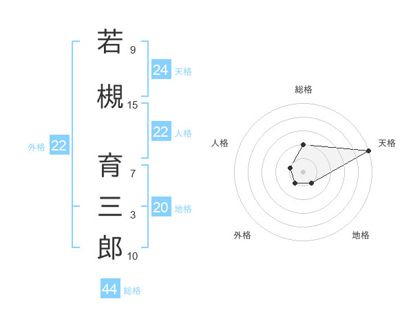若槻 育三郎さんの総格は44画の2点