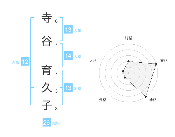 寺谷 育久子さんの天格は13画の5点!