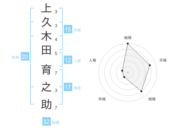 上久木田 育之助さんを姓名の画数から五運を鑑定