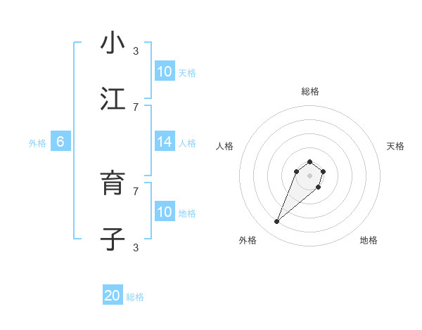 小江 育子さんの総格は20画の1点!