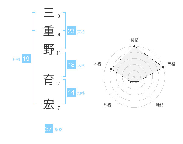 三重野 育宏さんを姓名の画数から五運を鑑定