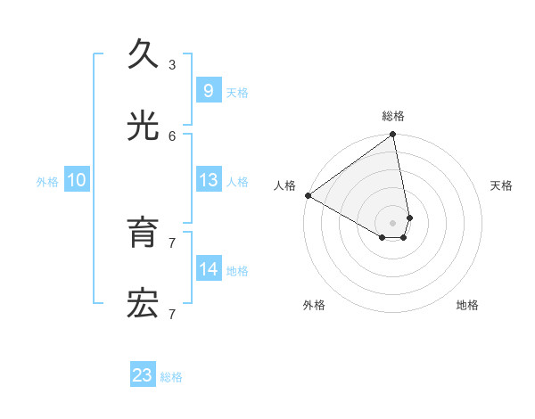 久光 育宏さんの総格は23画の5点!