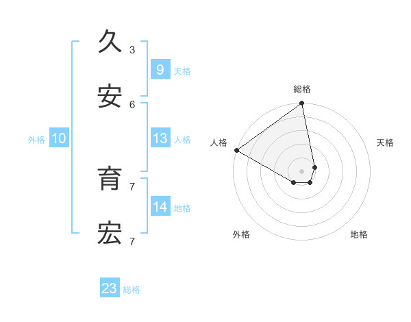 久安 育宏さんの総格は23画の5点!