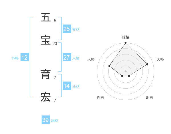 五宝 育宏さんの総格は39画の5点!