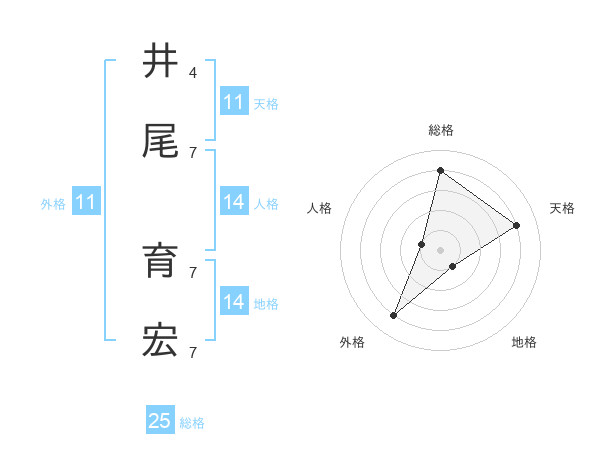 井尾 育宏さんの総格は25画の4点!
