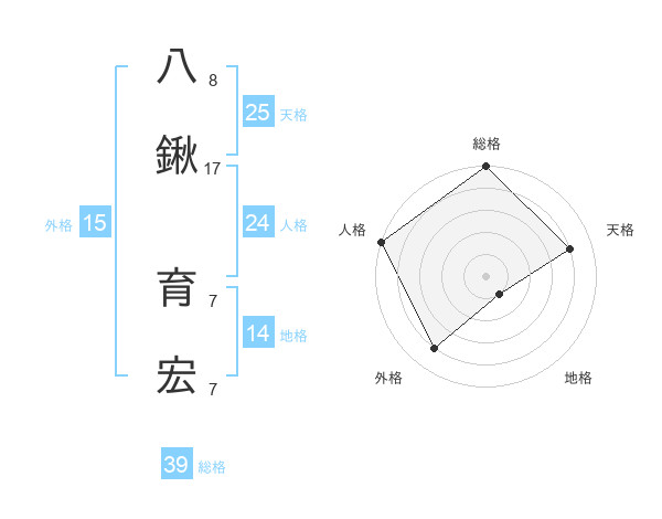 八鍬 育宏さんの総格は39画の5点!