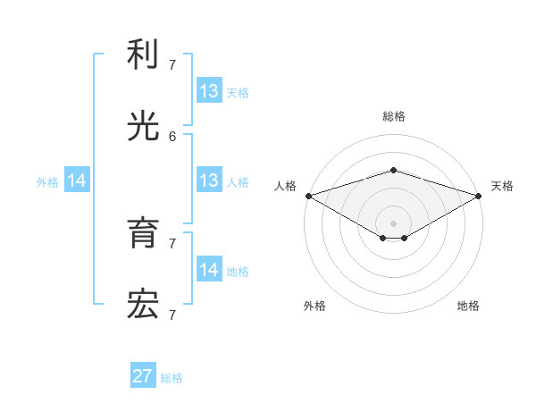 利光 育宏さんの天格は13画の5点!