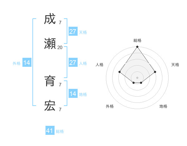 成瀬 育宏さんを姓名の画数から五運を鑑定