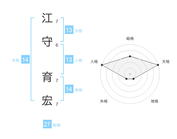 江守 育宏さんの総格は27画の3点!