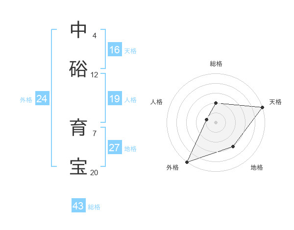 中硲 育宝さんの外格は24画の5点!
