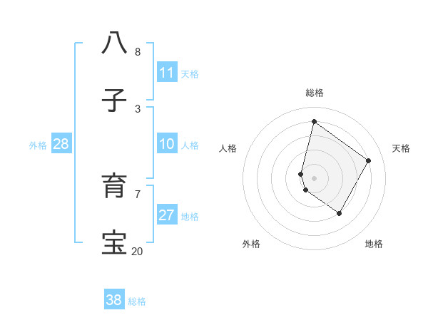 八子 育宝さんの総格は38画の4点!