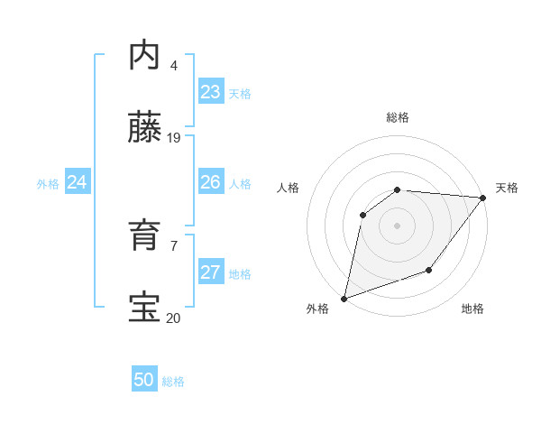 内藤 育宝さんを姓名の画数から五運を鑑定