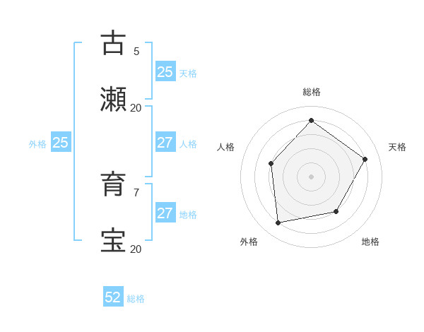古瀬 育宝さんを姓名の画数から五運を鑑定