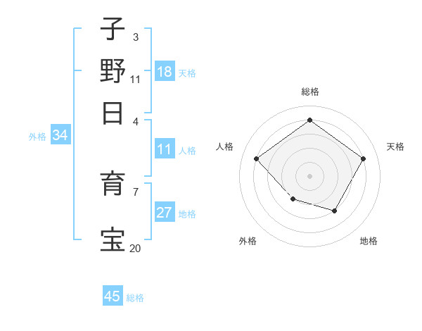 子野日 育宝さんを姓名の画数から五運を鑑定