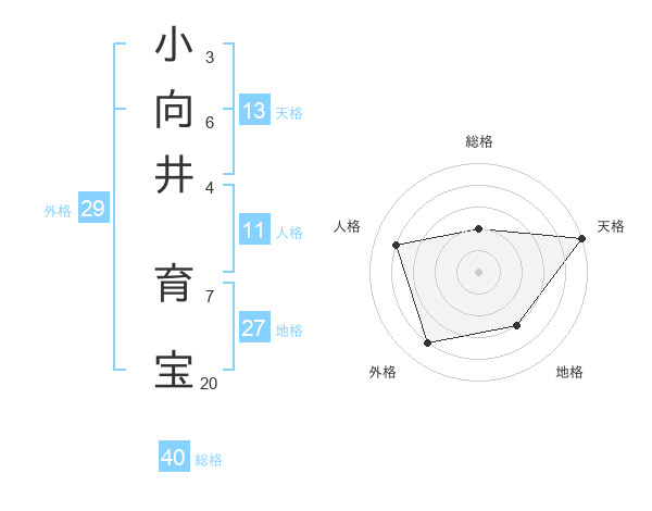 小向井 育宝さんを姓名の画数から五運を鑑定