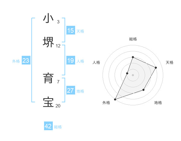 小堺 育宝さんを姓名の画数から五運を鑑定
