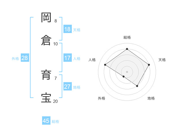 岡倉 育宝さんの総格は45画の4点!