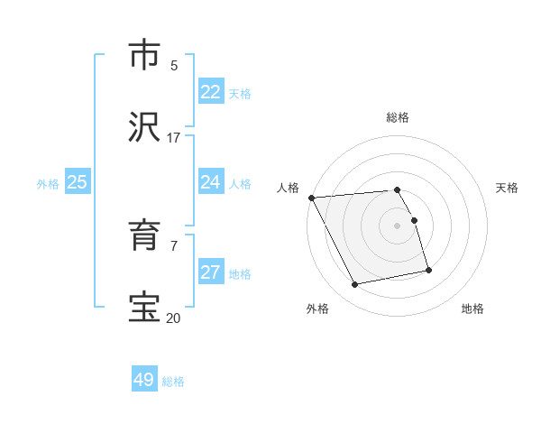 市沢 育宝さんの総格は49画の2点!