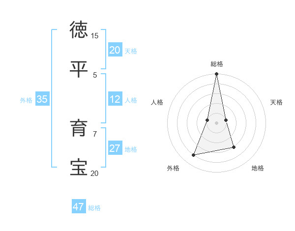 徳平 育宝さんを姓名の画数から五運を鑑定