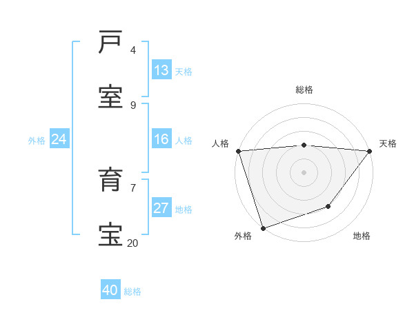 戸室 育宝さんを姓名の画数から五運を鑑定
