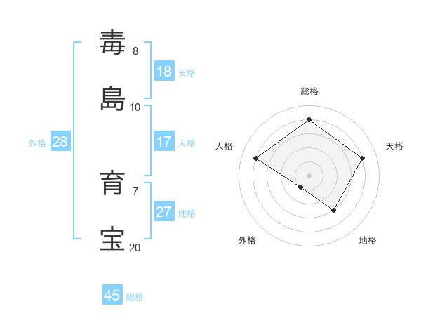 毒島 育宝さんの総格は45画の4点!