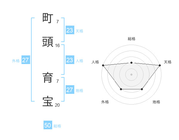 町頭 育宝さんを姓名の画数から五運を鑑定