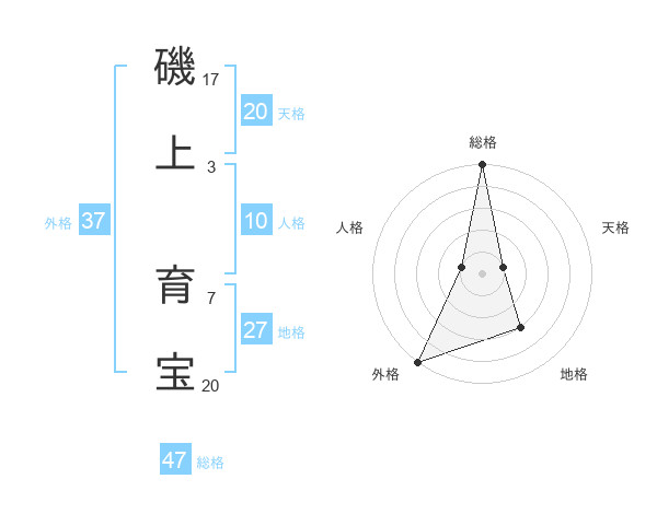 磯上 育宝さんの総格は47画の5点!