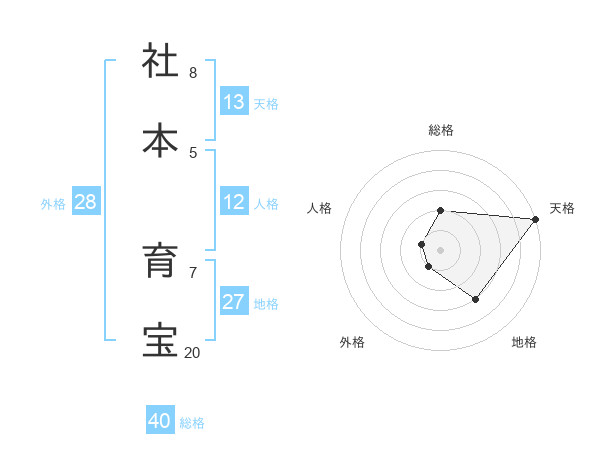 社本 育宝さんの天格は13画の5点!
