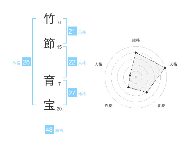 竹節 育宝さんの総格は48画の4点!