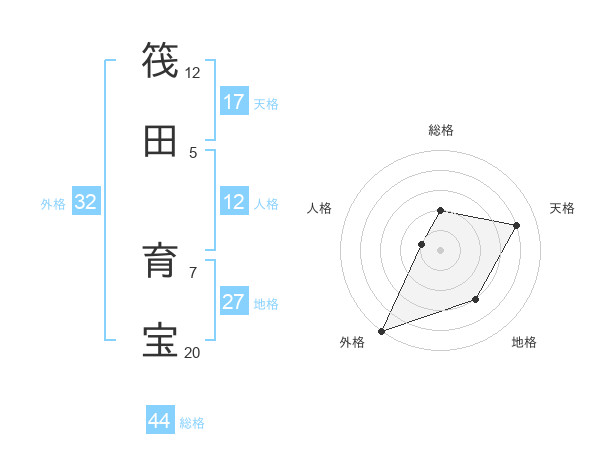 筏田 育宝さんの天格は17画の4点!