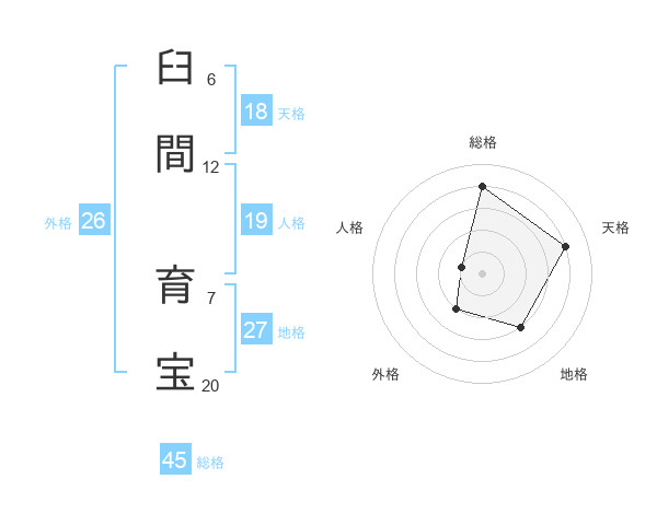 臼間 育宝さんを姓名の画数から五運を鑑定