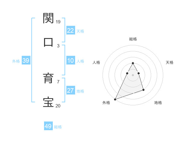 関口 育宝さんの外格は39画の5点!