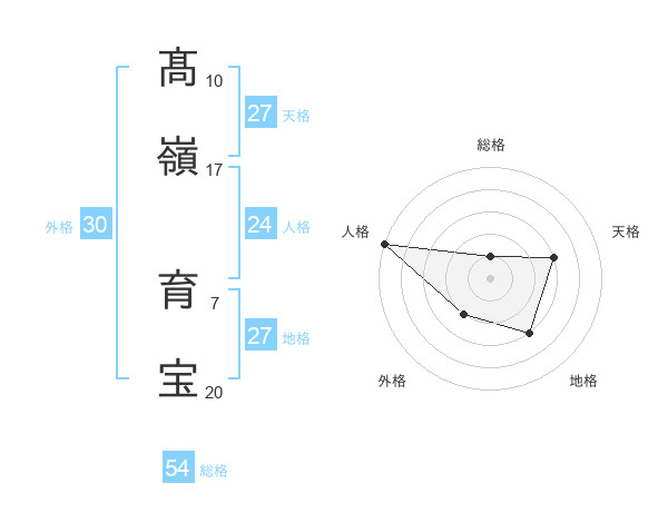 髙嶺 育宝さんの総格は54画の1点!