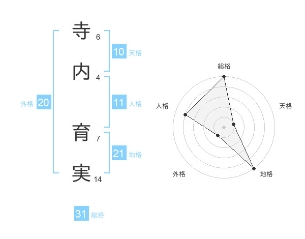 寺内 育実さんの総格は31画の5点!
