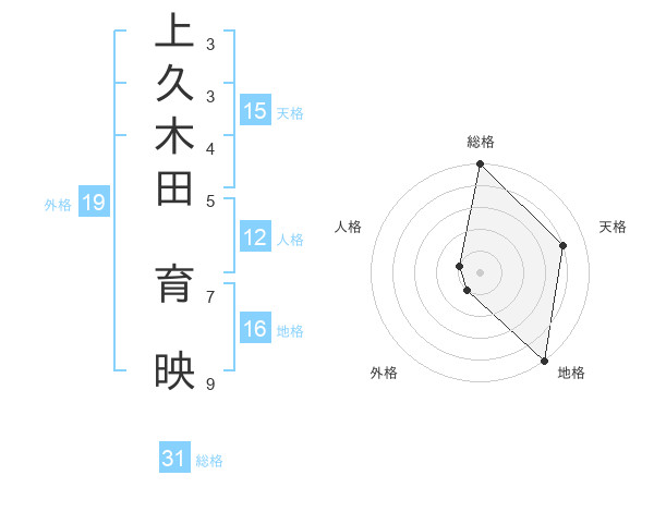 上久木田 育映さんを姓名の画数から五運を鑑定