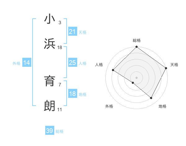 小浜 育朗さんの総格は39画の5点!