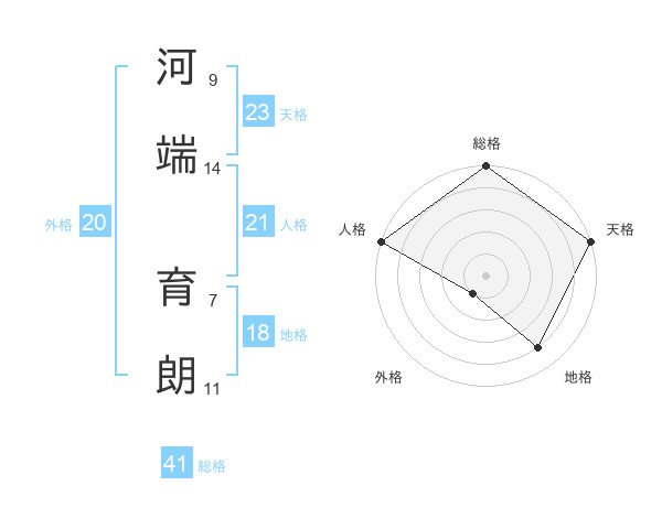 河端 育朗さんの天格は23画の5点!