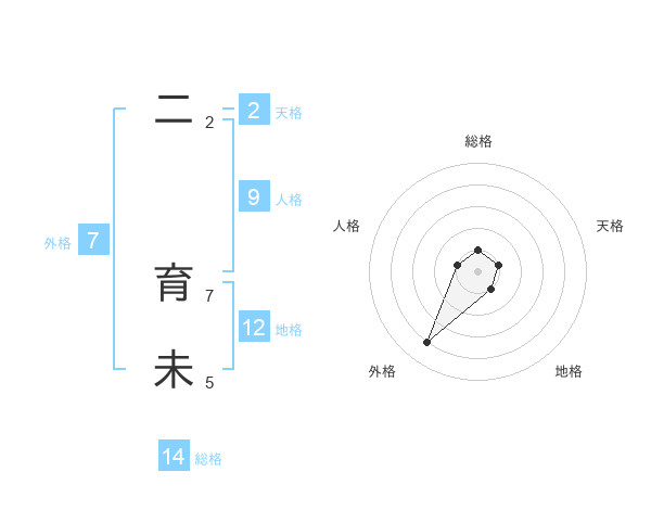 二 育未さんの総格は14画の1点!