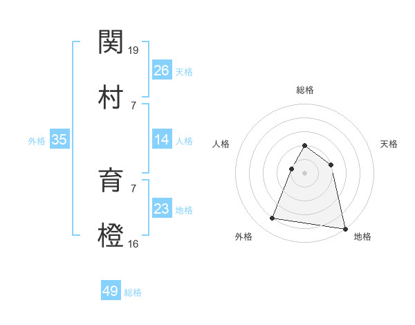 関村 育橙さんの総格は49画の2点!