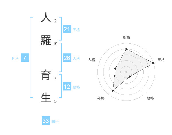 人羅 育生さんの天格は21画の5点!