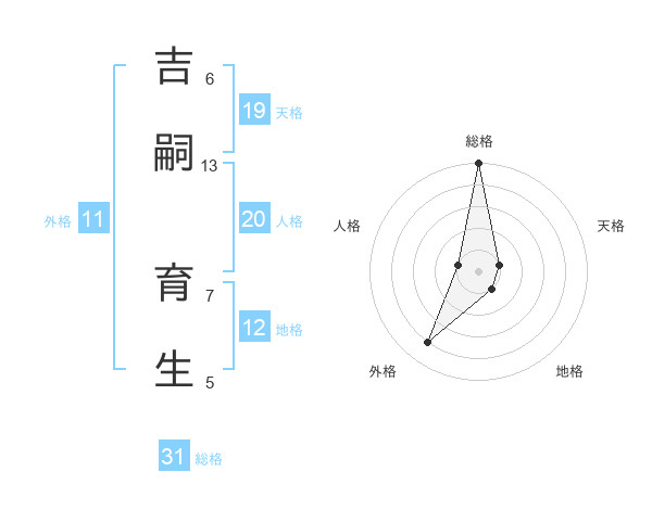 吉嗣 育生さんを姓名の画数から五運を鑑定