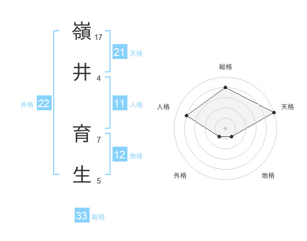 嶺井 育生さんの外格は22画の1点!