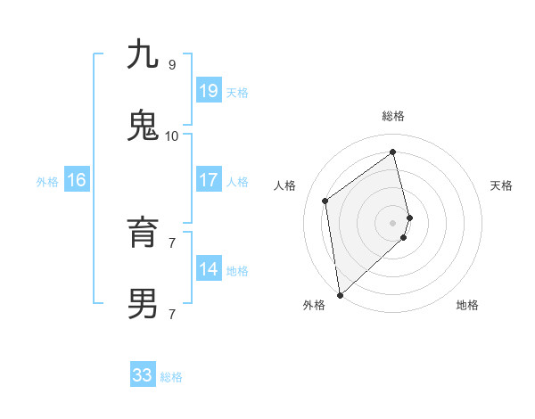 九鬼 育男さんの天格は19画の1点!