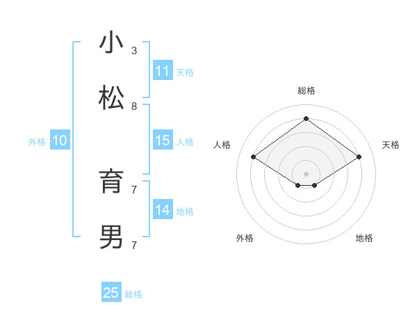 小松 育男さんの総格は25画の4点!