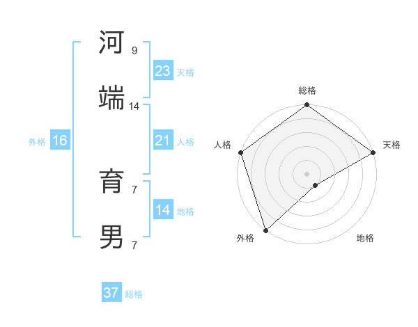 河端 育男さんの総格は37画の5点!