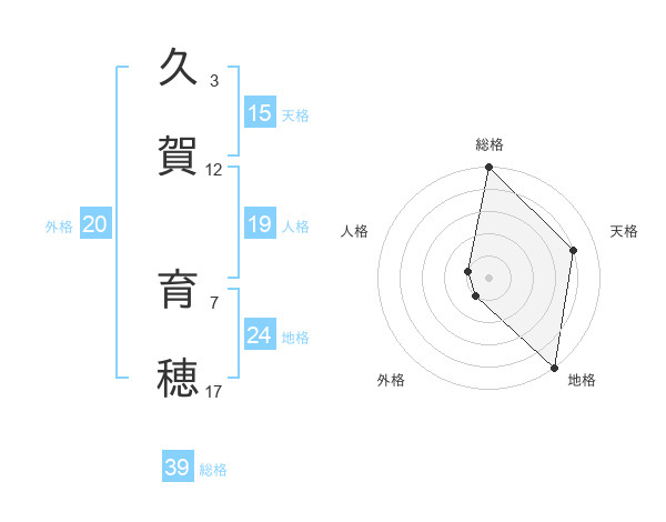 久賀 育穂さんの総格は39画の5点!