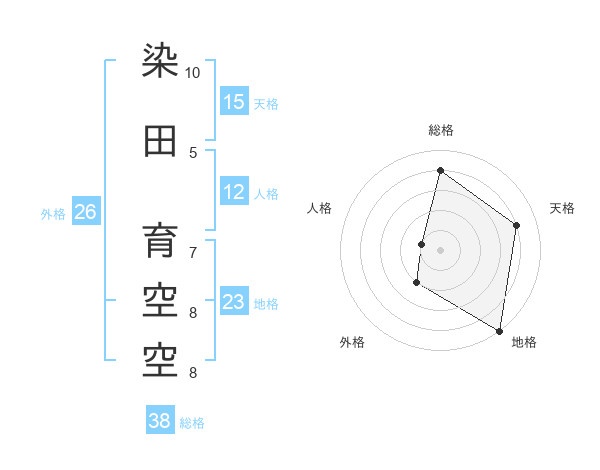 染田 育空空さんの総格は38画の4点!
