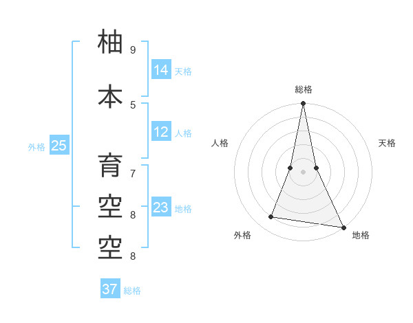 柚本 育空空さんの総格は37画の5点!