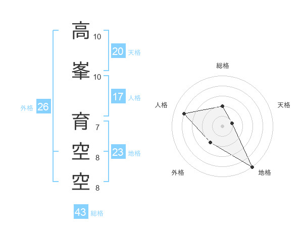 高峯 育空空さんを姓名の画数から五運を鑑定