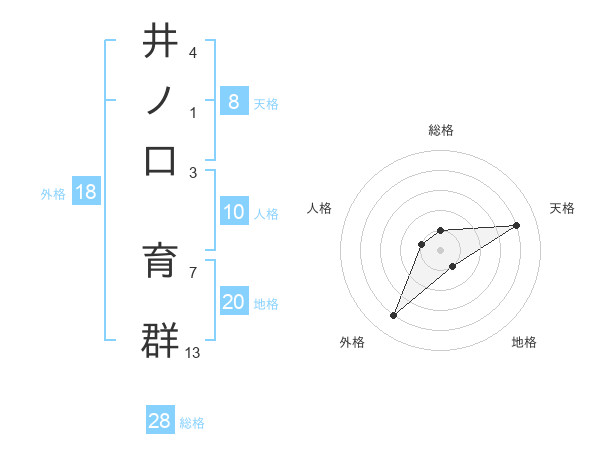 井ノ口 育群さんを姓名の画数から五運を鑑定